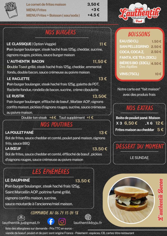 Retrouvez nos burgers originaux et de saison, confectionnées par Julien, avec des produits frais français, locaux et artisanaux.