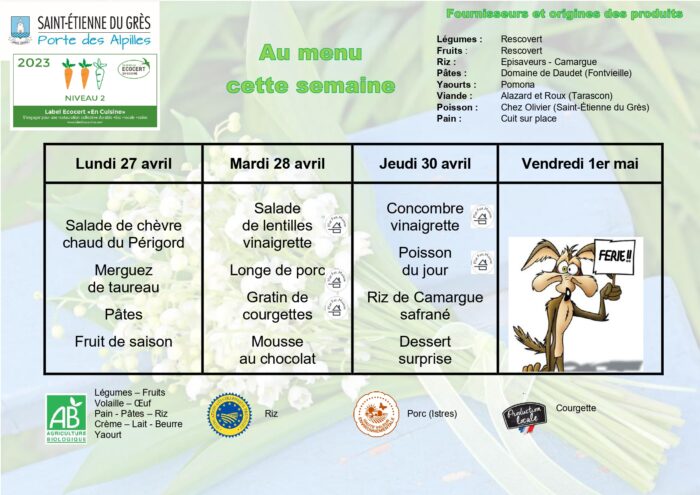 Ses menus sont établis dans le respect de la laïcité sans distinction de croyance ou de religion.